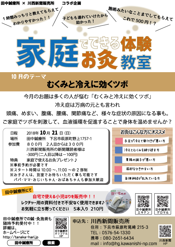 家庭でできるお灸体験教室を行います!