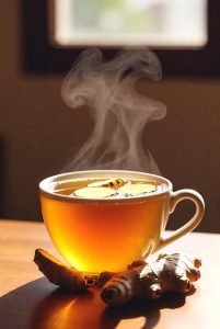上の写真は、AIが生成したしょうが紅茶画像です。生姜、ぶ厚すぎますね(笑)