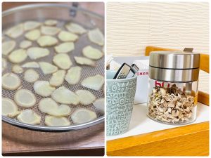 上の写真はAI画像ではありませんよ。私が作った乾燥生姜です